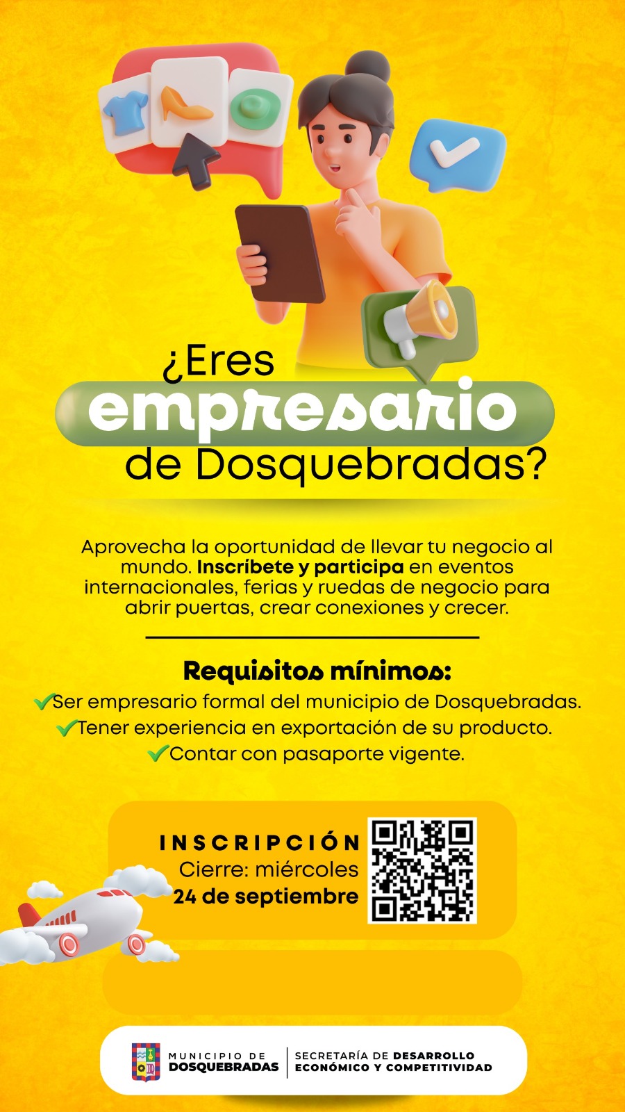 Hasta el 24 de septiembre, empresarios de Dosquebradas pueden inscribirse en la convocatoria para participar en ferias, ruedas de negocios y eventos nacionales e internacionales. Los interesados pueden inscribirse a través del enlace: este LINK