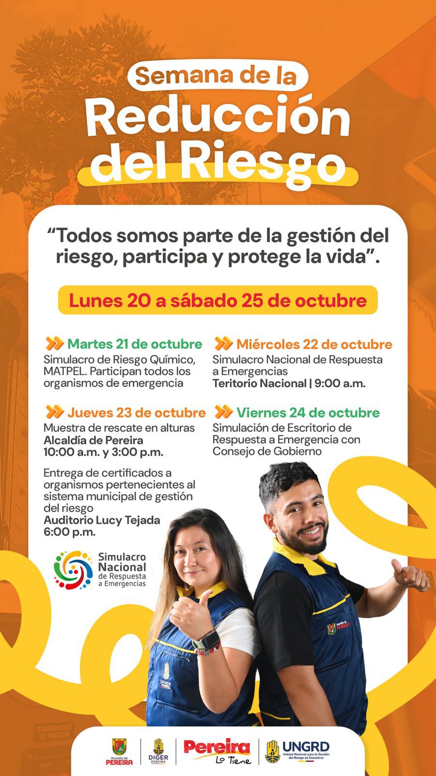 En el marco de la Semana de la Reducción del Riesgo de Desastres, Pereira se une a la conmemoración internacional del Día Internacional para la Reducción del Riesgo de Desastres (DIRRD), celebrado el 13 de octubre bajo el lema “Financiar la resiliencia, no los desastres”. Esta conmemoración hace parte del cumplimiento del Marco de Sendai 2015-2030, que impulsa acciones para reducir las pérdidas humanas, económicas y ambientales a través de la inversión en prevención y resiliencia.